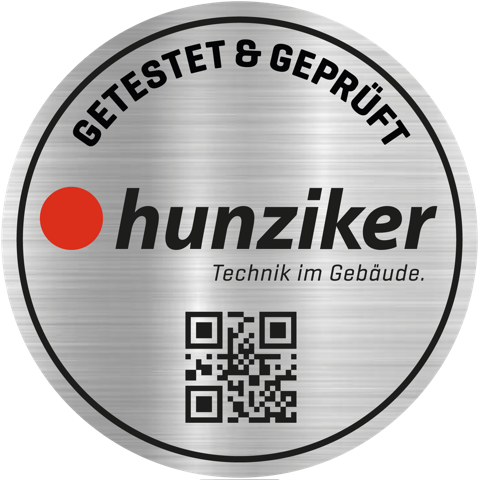 Dieses Bauteil wurde nach dem *HQM-Standard geprüft und getestet und entspricht damit sämtlichen Normen, konform nach heutigem Stand der Technik.*HQM (Hunziker Quality Management)